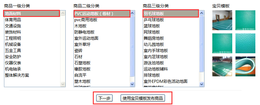 后,为商家提供该分类下最新的6款产品模板供其选择,如下图所示,点击发布后进入该产品模板发布页,模板页中会有提示信息,商家可根据提示完善产品信息;
