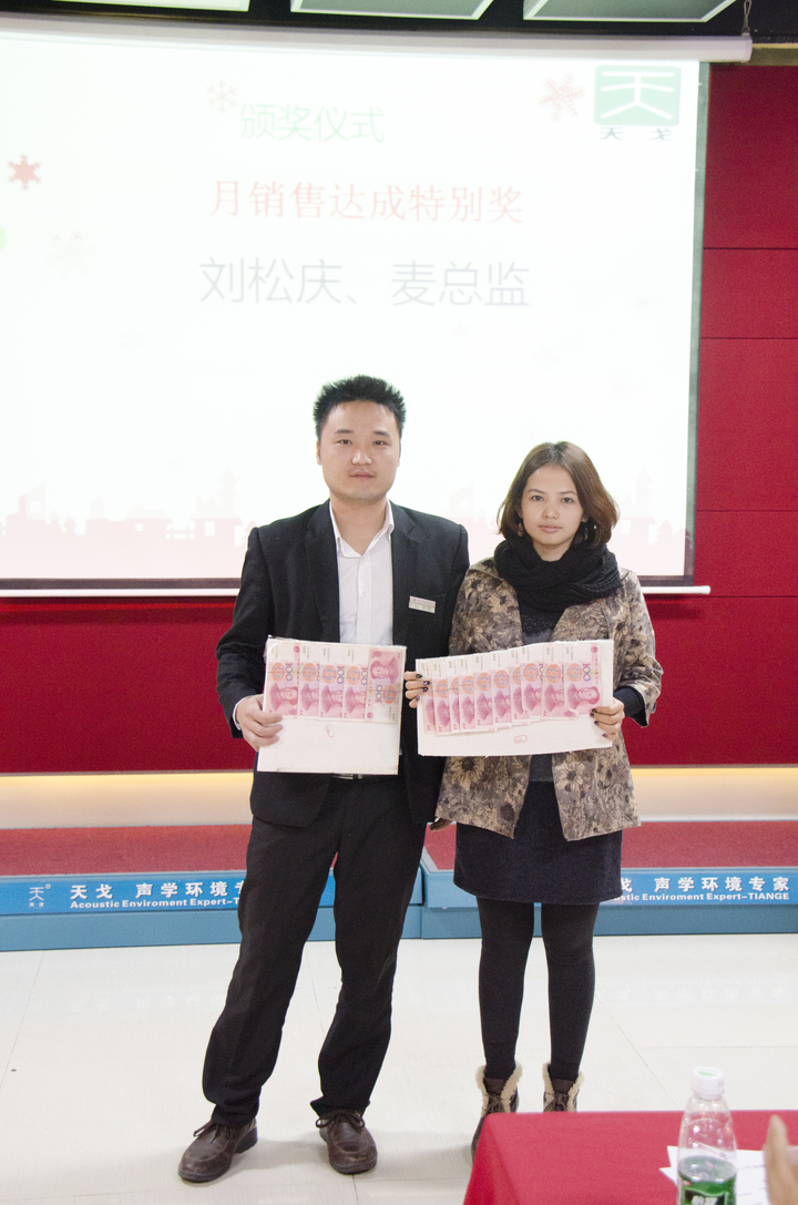 国内销售业务员刘松庆,外贸部麦总监获得月销售达成特别奖