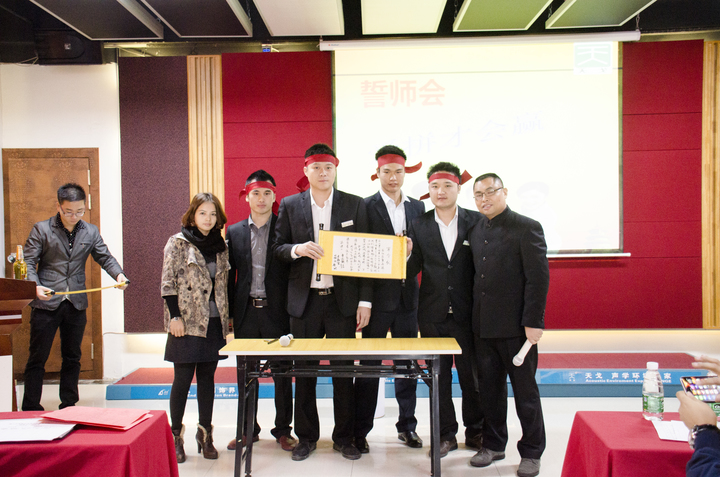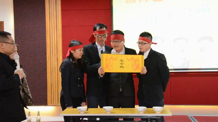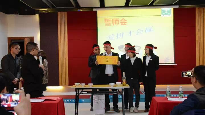 12月是冲刺月,业绩目标是一切,商场犹如战场,天戈的销售铁军将士在这个大会上头扎大红布,签下军令状,喝下壮行酒,定下不拿目标誓不还!每个团队都百分百对自己的承诺负责,如未完成目标,都将取消元旦假期!气势堪比即将奔赴战场的战士们!